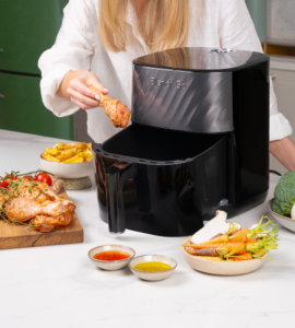Nie. Airfryer został zaprojektowany tak, aby prowadzić Cię przez cały proces. Automatyczne programy dobierają czas i temperaturę, dzięki czemu gotujesz intuicyjnie, nawet jeśli wcześniej nie korzystałeś z air fryera. Mimo to, doświadczeni kucharze również wykorzystają go znakomicie.
